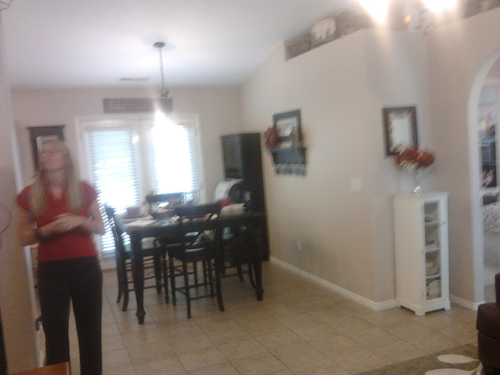Oh look! It’s Renae Stucki doing the open house. She looks happy to be there and in this pic, she’s actually laughing. Notice the dining area.