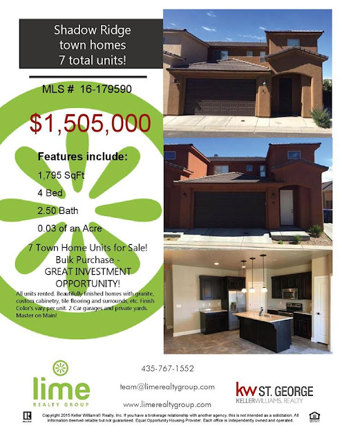 LIME REALTY GROUP is absolutely thrilled to tell you about this new investment opportunity in Hurricane, UT!!! There are 7 units being sold together as a bulk purchase for a hugely discounted price per unit. These amazing townhomes could be the foundation of a future as a landlord or help improve the worth of an investor who already owns rental units.