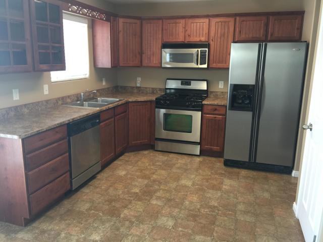 Located just off Main St., it’s near shopping, hospital, schools and more! The perfect layout with amazing kitchen cabinetry and stainless steel appliances. Also includes a private patio area. Here’s a pic of the amazing kitchen!