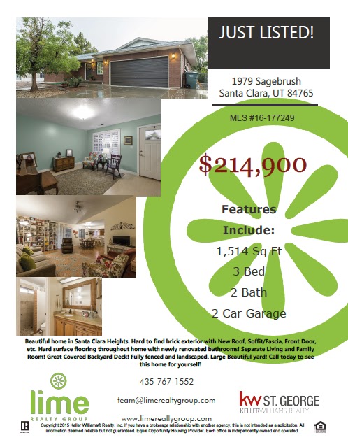LIME REALTY GROUP is proud to present another featured property. This one is located at 1797 Sagebrush in Santa Clara, UT!