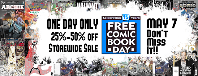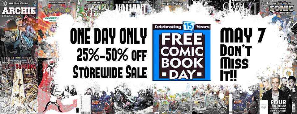 Head on down to Comics Plus on St. George Blvd tomorrow, pick up your free comic book and enter to win our prize. You can also take advantage of their annual half off sale with back issue books selling for 25% to 50% off. Go through the bins and see what you can find for your own personal collection.