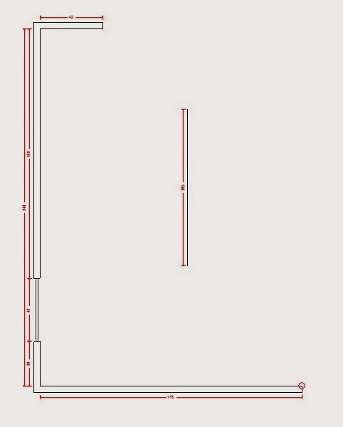 Now that we’ve made the rough figure, it’s time to get technical. Using a ruler and the blueprint scale, we determine the exact length of each wall and we edit our drawing to reflect it. This is also the time we add anything in the wall that could conflict with cabinets; such as windows, doors, etc. etc. Of these three walls, only one has a doorway. We’ve identified it on the plan and added it to our drawing. Right now, our drawing reflects the architects exact design of the space. Keep in mind, once the home is built, we may have to adjust some of our figures. Framed walls don’t always end up exactly the same length as they do on the plan. We need to be able to adjust for real space before we start building the cabinets.