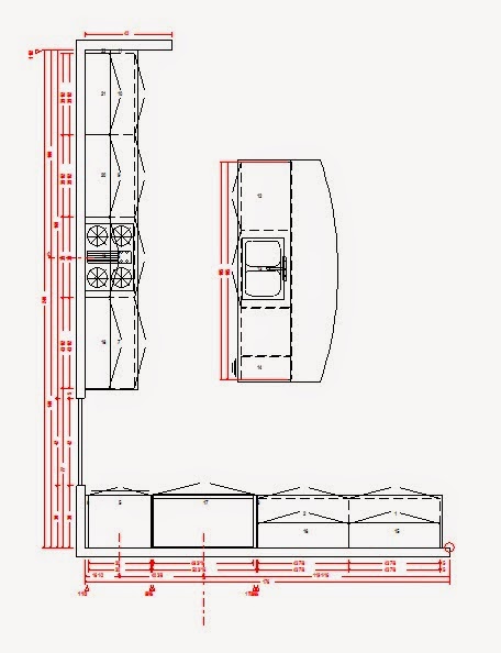 The final task is completing a simple design on each surface. We won’t add a bunch of expensive cabinets like garbage pullouts, spice racks, lazy susans, breadboards or utility closets. All base cabinets will be the simple door/drawer combo. We will try to use as few as possible because each additional cabinet increases our bid and right now, we’re just preparing for the bid. High end, more expensive cabinets will be discussed when the client has the chance to go over the plans. So we’ve kept it light, as inexpensive as possible and we’ve followed the plan as exactly as we were able. Are you ready to see the final result?