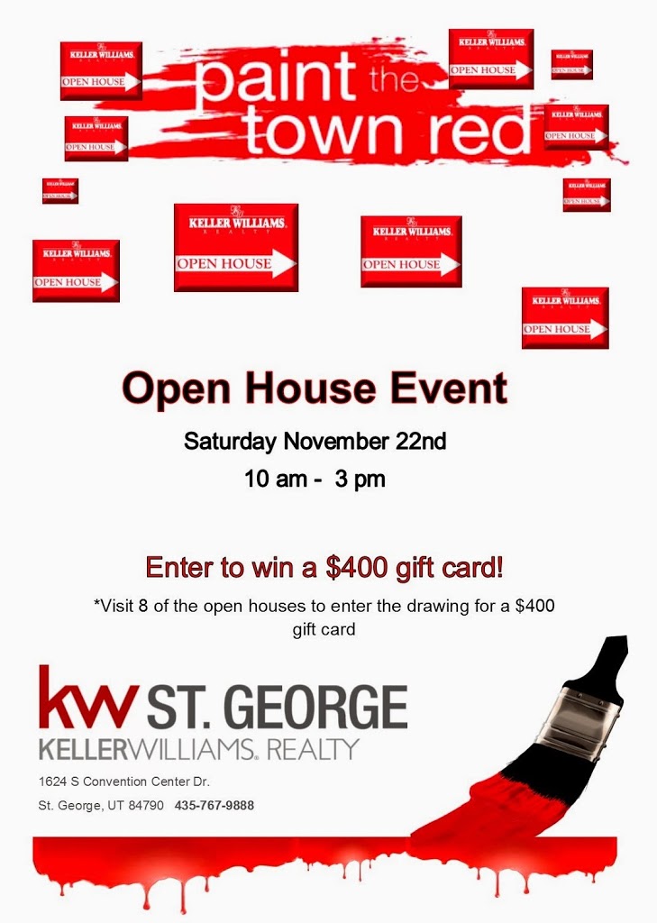 Lime Realty Group is pleased to be a part of Keller Williams Open House event, “Paint the town Red”!!!! It happens this weekend on Saturday and anyone who visits all of the houses on the tour will be eligible to win a $400 gift card!